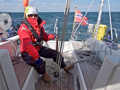 - Autopiloten takker for seg. Det ble håndstyring fra Florø helt til Tyskland.
