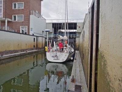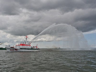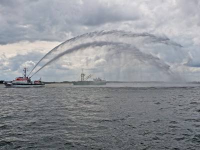 - I innseilingen til Hoogsiel ble vi hilst med en spesialoppvisning.