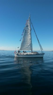 Enno hat schon ein paar AIS-Signale in der Paradiesbucht entdeckt und auch von hier kommen uns Segelboote entgegen: Mås, Sofie og Havløye. Aus dem Hafen kommen uns Vilja und Spleis entgegen, die alle hinter uns her durch die Molenöffnung fahren. Toll!! Wir freuen uns riesig. Auf der Mole stehen Freunde und Kollegen und auch auf dem Nyholmen entdecken wir Freunde und meine Eltern. Noch sind wir nicht ganz am Ziel, da wir unseren Bootsplatz in der Rønvikmarina haben und noch durch das gesamte Hafenbecken tuckern müssen. Wir finden unseren Bootsplatz ohne Probleme, werdem sogar richtig eingewiesen und bekommen Hilfe beim Vertäuen, bevor wir an Land hüpfen. Wir bekommen einen herzlichen Empfang, viele sind gekommen und wir sind überglücklich. Wir haben es geschafft!! Zwei Mal haben wir mit unserer kleinen Inua den Atlantik überquert.