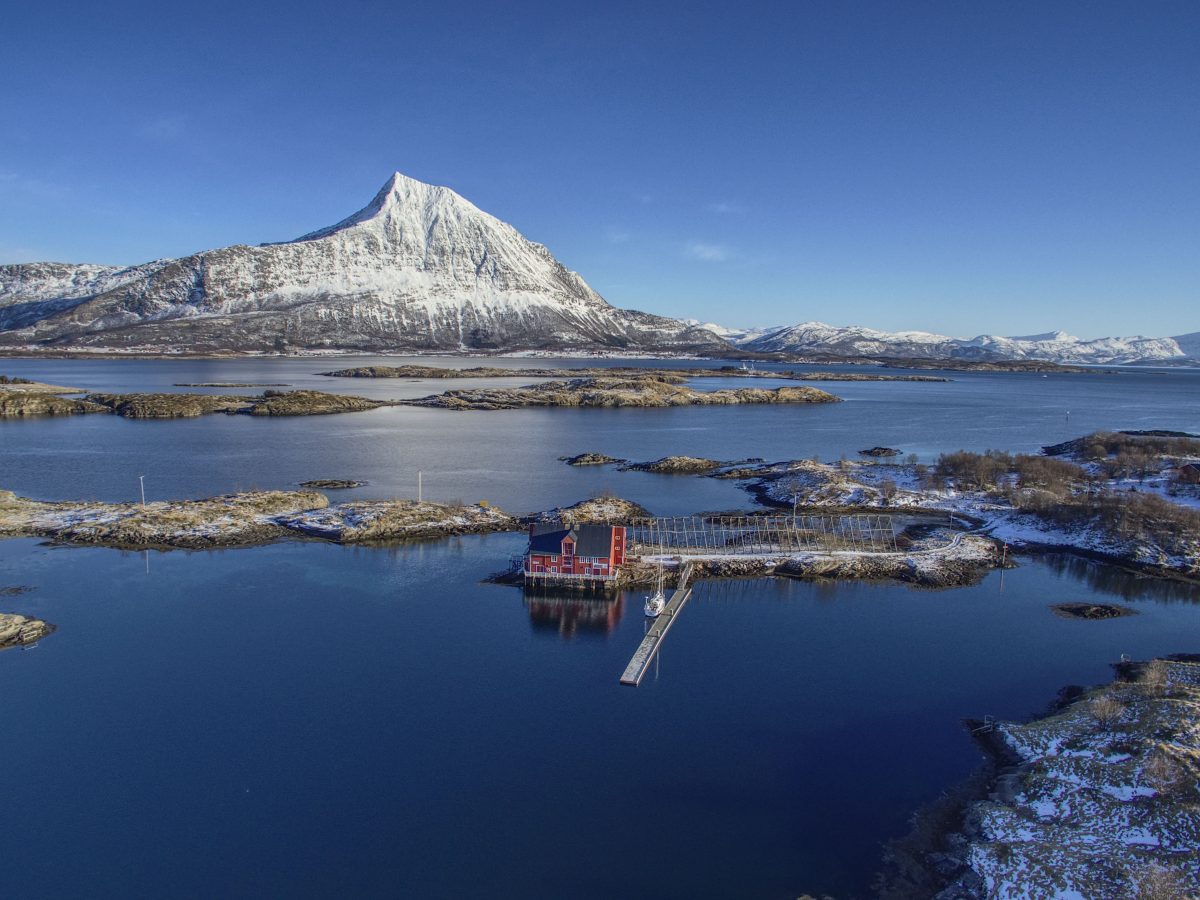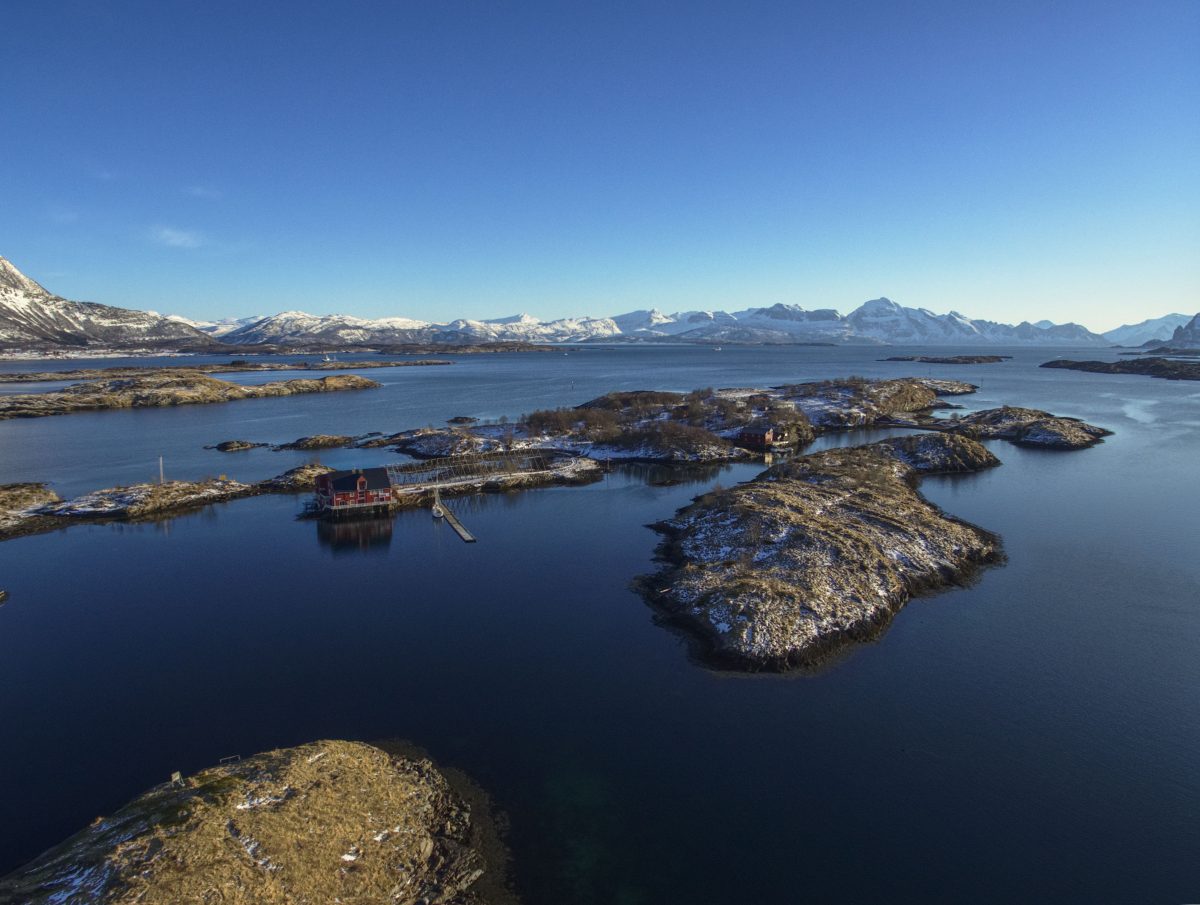 Am nächsten Morgen sind wir früh aufgewacht. Der Wind hat gedreht und kommt nun direkt von der Seite. Inua wird an den Steg gedrückt und die Fender knirschen gegen den Rumpf. Ausserdem schaukelt Inua unangenehm hin und her. Wir nehmen ein kurzes Frühstück ein und machen uns schon um 9 Uhr auf den Weg. Hier ist es zu ungemütlich geworden. Heute ist es mehr bewölkt, aber etwas wärmer. Wir sind mit Motor unterwegs um die Batterien zu laden, haben aber das Vorsegel zur Unterstützung draussen. Es hat einigermassen Dünung, als wir aus Fleinvær rauskommen, aber als wir in die geschützte Umgebung von Bliksvær kommen wird es ruhig. Es sind viele Vögel zu sehen, noch mehr Austernfischer und auch viele Teiste. Wir liegen am letzten Ende der Gästebrücke. Der Fingersteg, der sonst immer noch quer ging, ist weg. Und auch einige andere von den Fingerstegen sind wohl einem Unwetter zum Opfer gefallen. Einer liegt auf dem Meeresgrund. Schade! Am späten Nachmittag machen wir den üblichen Spaziergang bis zu der kleinen Kirche und laufen einen Bogen um die Felsen auf der trocken gefallenen Strandkante. Schön hier!! Auf dem Rückweg holt uns ein heftiger Schneeschauer ein, als wir wieder an Bord sind, kommt die Sonne durch.